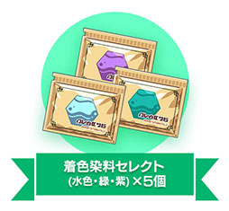 「着色染料セレクト(水色・緑・紫)」×5個、「アビリティプラグ選択ボックス2」×10個など