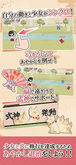 弓を引いてあやかしを退治しよう。