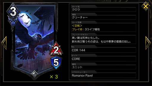 このユニットに続けて3MPのユニットを2体展開し,3体で攻める動きは非常に強い。このカードが初期手札にあり,「クロウ」「ネロ アンジェロ」などの3MPユニットを続けて展開できそうなときは,キープしてその動きを狙っていきたい。枠が3面空いているときでないと成長のレベルアップを狙いにくいので,初手で出すことがこのユニットをもっとも有効に使える動きだ。