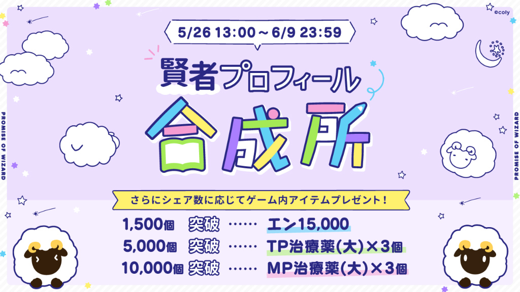 「魔法使いの約束」,自分だけの賢者プロフィールを作るコンテンツが公開。シェア数に応じてエンや治療薬などのゲーム内アイテムがもらえる