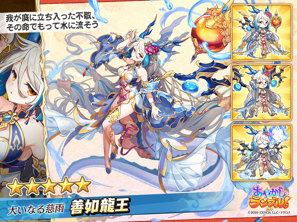 「あやかしランブル!」に“★5善如龍王”など新キャラ3体が追加。季節限定ログインボーナスの開催も