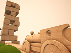 無限に広がるおもちゃ箱の世界へ飛び込んだら、レールを並べ、橋を架けて、町を作ろう。簡単なゲーム操作で思い通りに組み立てができる。