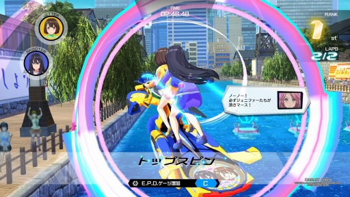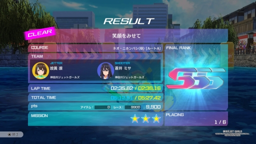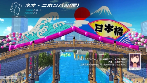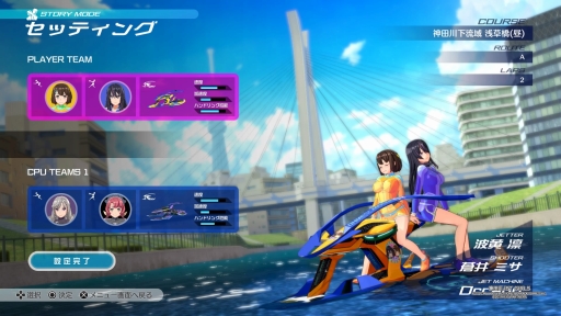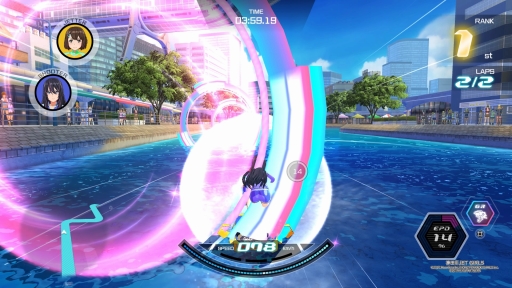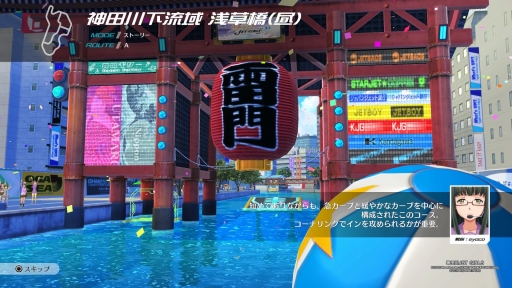 「ジェットレース」の聖地となっている。ストーリーモードでは,ジェットレースの最高峰である「神田川杯」の優勝目指す少女たちのストーリーを,登場キャラクターの所属学校(チーム)別に楽しめる。