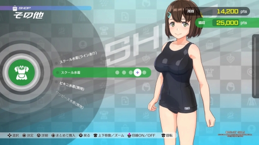 | マシンのカスタマイズアイテムやキャラクター衣装はショップで購入できる。各種制服やスーツはもちろん,スクール水着などの“定番”アイテムもラインナップ |