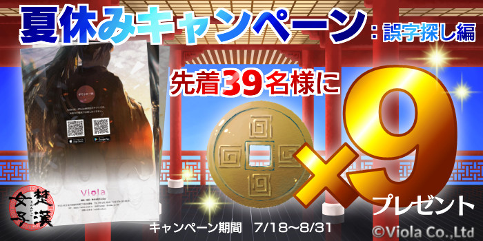 「楚漢女子」,先着39人に金コインをプレゼントする「夏休みキャンペーン」が開催中