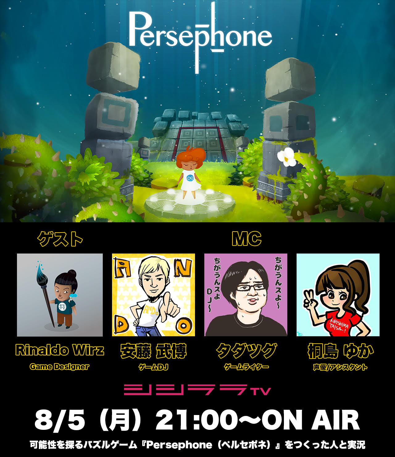 8月5日21:00配信の「つくった人がゲーム実況」にてパズルゲーム「ペルセポネ」を特集