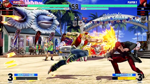まずガードポイント付きの攻撃を繰り出す“シャッターストライク”ですが,基本的にKOFシリーズは攻めが強いゲームなので,守りに使えるシステムとして新しく追加しました。ただ,守勢時にしか使えないというものではなく,ガードポイントを生かすことで攻めのアクセントとしても使えるようになっています。