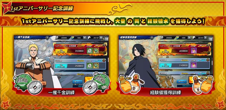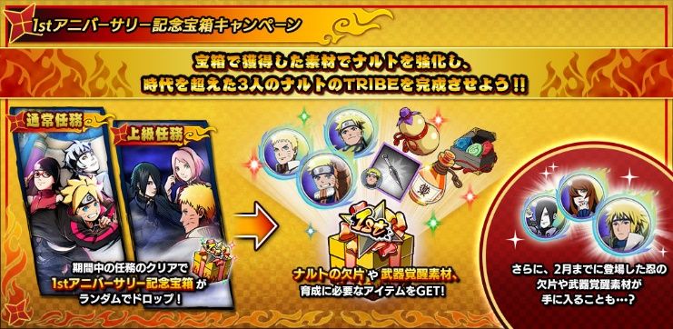 「NARUTO X BORUTO 忍者TRIBES」,1周年記念で10連ガシャが1日1回無料に