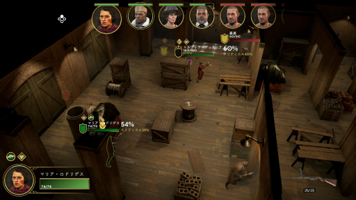 本作の主力武器は拳銃やマシンガンといった銃器類で,まともに突っ込むとハチの巣にされる。そのため障害物に隠れて戦うのがセオリーとなる。障害物を選ぶ際には,大きさと向きが重要だ。柱や壁といった高い障害物なら「フルカバー」,テーブルや木箱など低い障害物なら「ハーフカバー」となり,前者の方が防御効果が高い。ただし障害物も万能ではなく,側面に回り込まれれば無意味になる。お互いの位置関係や移動範囲から最適な障害物を選んで隠れながら,敵の側面に回り込むことが重要だ。