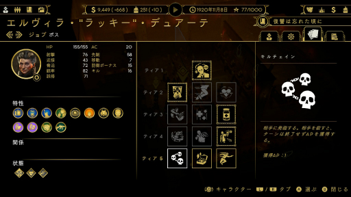 また,特定の武器でキルを重ねるなど条件を満たすと新たな特性を手に入れたり,長時間ともに行動した構成員たちが恋愛関係になったりというように,ゲームを進めることで自分だけのドラマが生まれていくのは特に面白いポイントだと感じた。