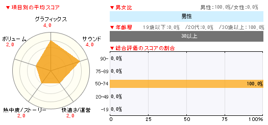 グラフィックス サウンド 快適さ/運営 熱中度/ストーリー ボリューム 4 4 2 2 2