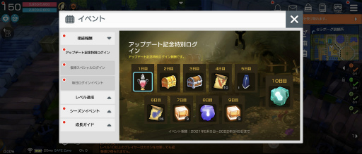 10日間ログインするだけで装備やアイテムがもらえる「アップデート記念特別ログイン」イベントを開催しました。