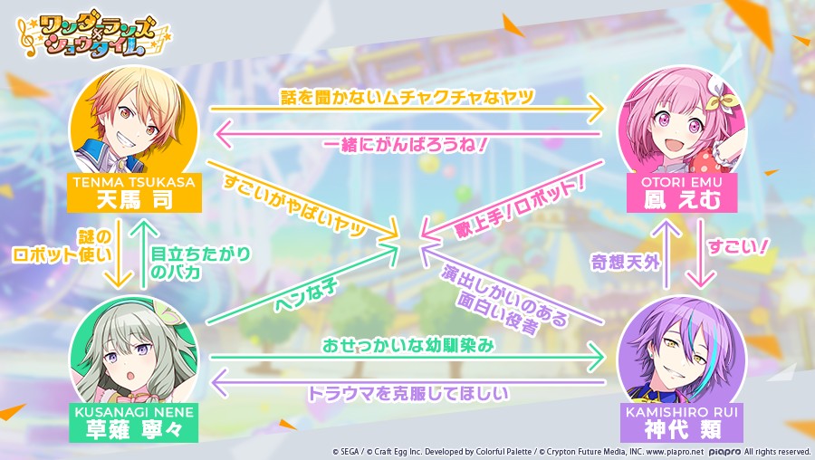 「プロジェクトセカイ カラフルステージ! feat. 初音ミク」,ゲーム内に登場する5ユニット,総勢20名のプロフィールと相関図が公開に