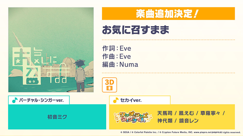 「プロジェクトセカイ」にとあ氏と164氏が楽曲を提供。“お気に召すまま”など新たに登場するリズムゲーム楽曲情報も公開に