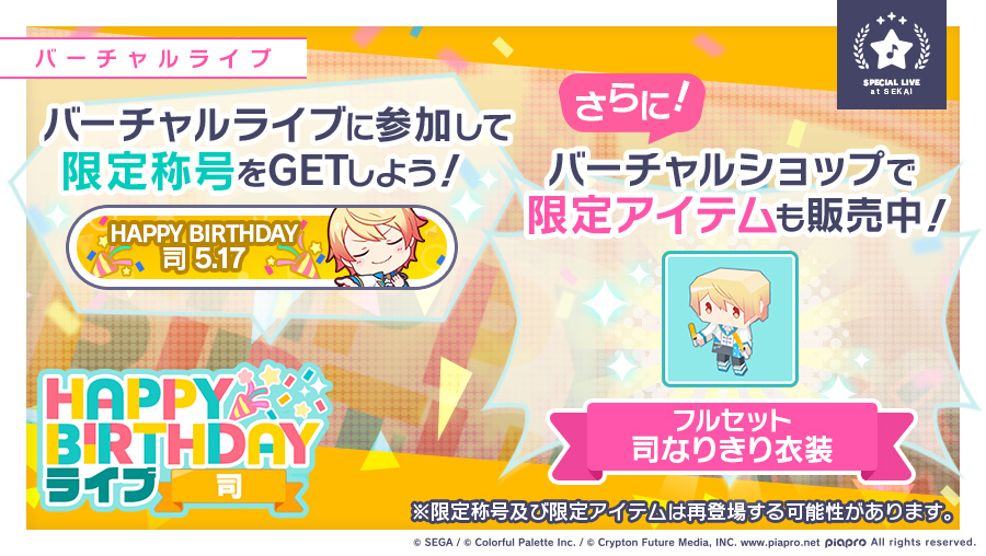「プロジェクトセカイ」,本日限定“HAPPY BIRTHDAYライブ 司”が開催