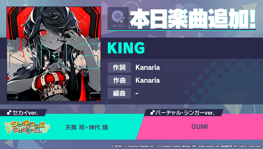 「プロジェクトセカイ」にKanaria氏が作詞・作曲したKINGが実装