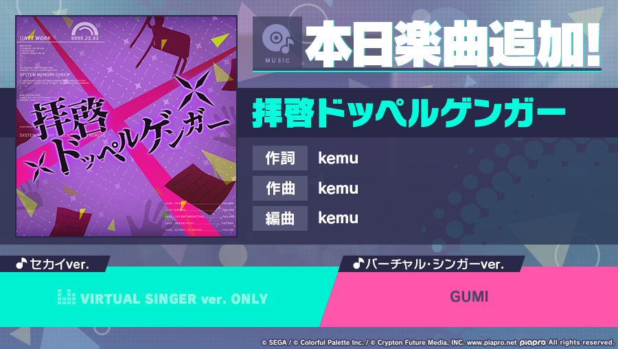 「プロジェクトセカイ」,“拝啓ドッペルゲンガー”がリズムゲーム楽曲として追加