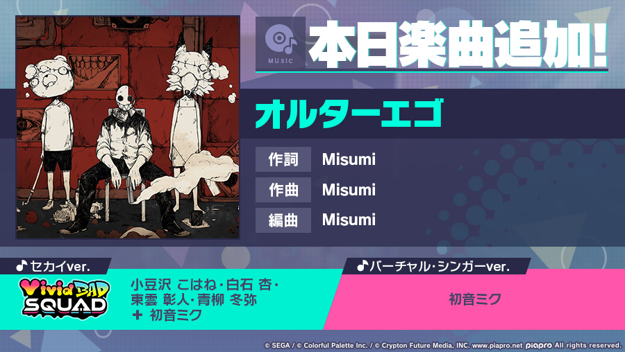 「プロジェクトセカイ」,“オルターエゴ”をリズムゲーム楽曲として追加