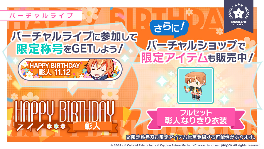 「プロジェクトセカイ」,本日限定で“HAPPY BIRTHDAYライブ 彰人”をゲーム内で実施