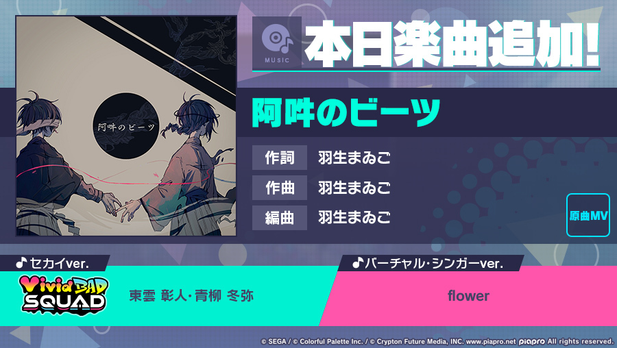 「プロジェクトセカイ」,“阿吽のビーツ”をリズムゲーム楽曲に追加