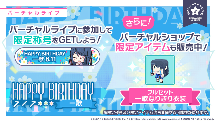 「プロジェクトセカイ」,本日限定の“HAPPY BIRTHDAYライブ 一歌”を開催中
