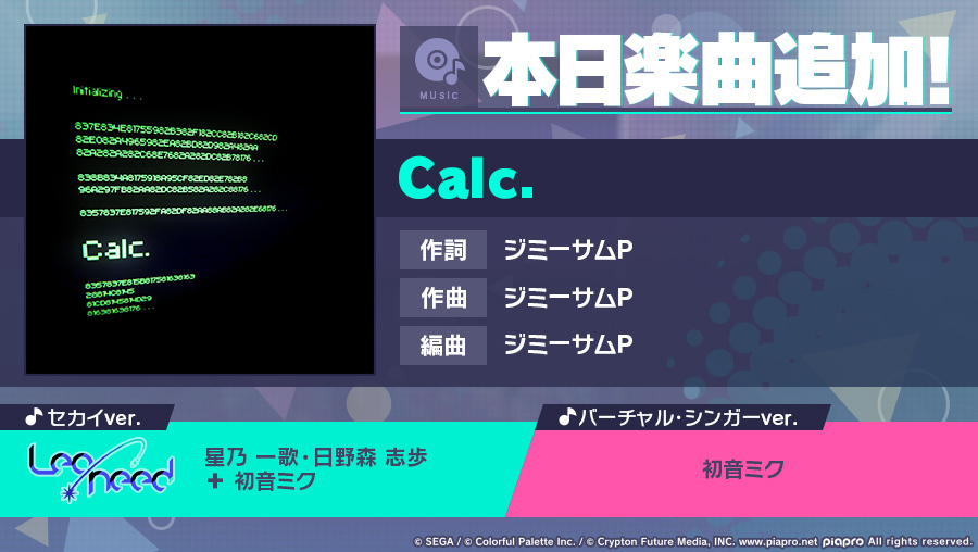 「プロジェクトセカイ」,“Calc.”をリズムゲーム楽曲として追加