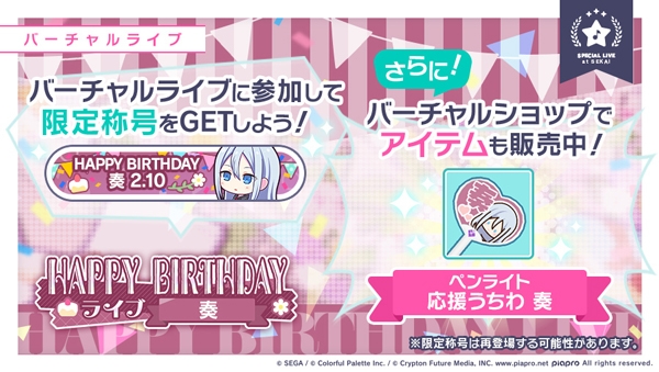 「プロジェクトセカイ」“HAPPY BIRTHDAYライブ 奏”が本日限定で開催に