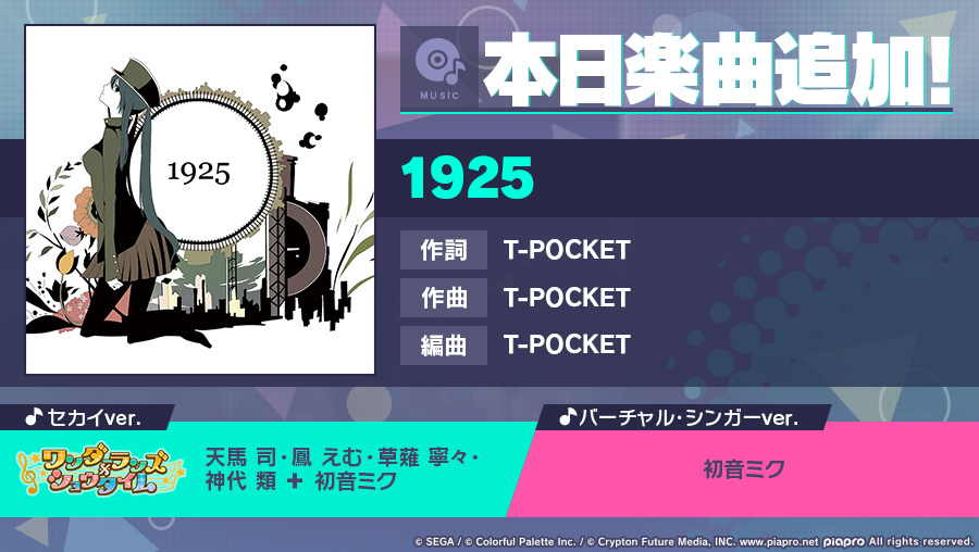 「プロジェクトセカイ」,“1925”をリズムゲーム楽曲として追加
