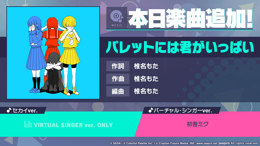 「プロジェクトセカイ」,“パレットには君がいっぱい”をリズムゲーム楽曲として追加