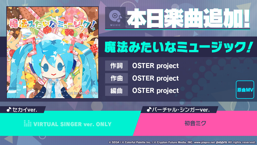 「プロジェクトセカイ」,“魔法みたいなミュージック!”をリズムゲーム楽曲に追加