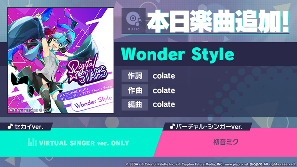 「プロジェクトセカイ」,“Wonder Style”をリズムゲーム楽曲として追加