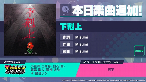 株式会社セガ(本社:東京都品川区、代表取締役社長COO:杉野行雄)と株式会社Colorful Palette(本社:東京都渋谷区、代表取締役社長:近藤裕一郎)は、iOS/Android向けリズム&アドベンチャー『プロジェクトセカイ カラフルステージ! feat. 初音ミク(以下、プロジェクトセカイ)』について、2023年6月10日(土)より、Misumiさんの書き下ろし楽曲「下剋上」をゲーム内に追加いたしました。