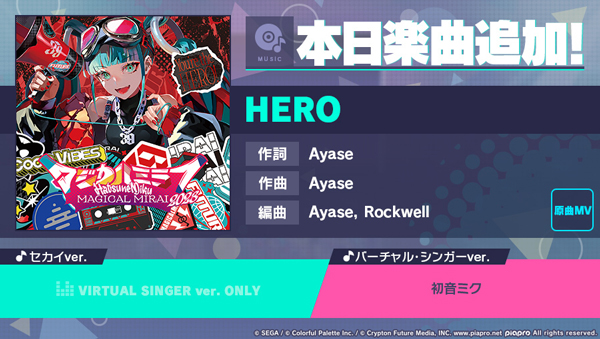 「プロジェクトセカイ」,HEROをリズムゲーム楽曲に追加