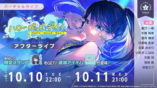 イベント終了後には「バーチャルライブ」でのアフターライブとして、「ハロー・グッド・デイ!アフターライブ」を開催いたします。