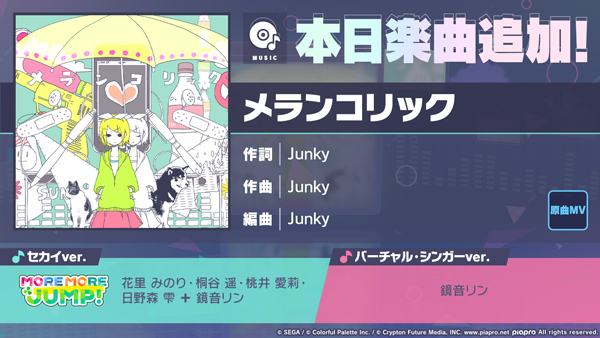 「プロセカ」,リズムゲーム楽曲に「メランコリック」を実装