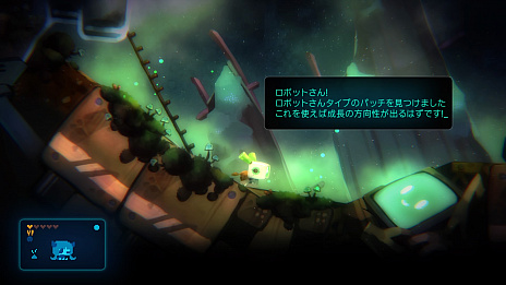 トリコに与える食料などを集めるため,菌類に汚染された外界へと探索に出かける。探索で集めた素材は,帰還したときに5種類の資源へ分解&ストックされる。お世話ロボットは,“カスタムパーツ”や“ロール”を搭載することで,強化が可能だ。