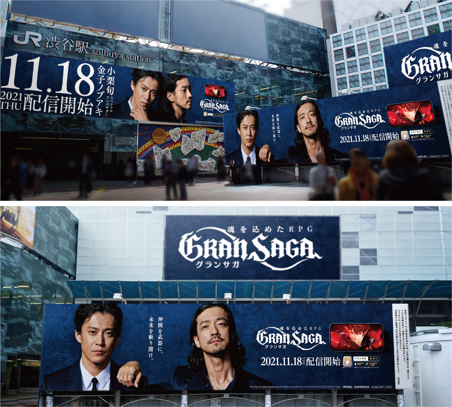• 画像ギャラリー No.001 | 「グランサガ」の事前登録者数が400万人を突破。小栗 旬さんと金子ノブアキさんを起用した大型広告が渋谷・池袋・秋葉原などで掲出開始