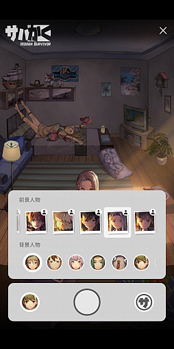メニューから右上カメラのアイコンを押すとシェルターに加入しているメンバーから好きなメンバーたちを最大5人まで選択してスクリーンショットを撮ることができるようになります。LoveRキャラクターのくつろいでいるシーンや、他の好きなキャラクターを並べてのお気に入りの一枚を撮影してみてください。
