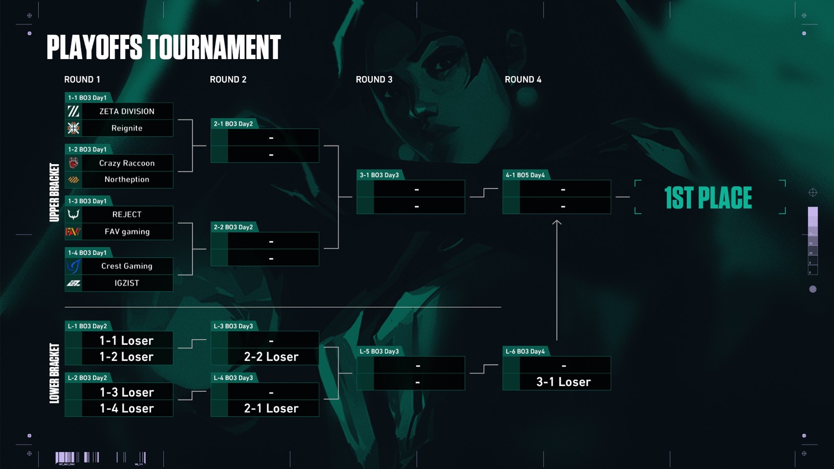 「2022 VALORANT Champions Tour Challengers Japan Stage1」のPlayoffs対戦組み合わせが発表に