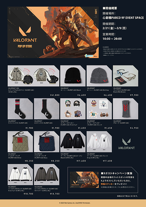「VALORANT POP UP STORE」を,1月に開催した渋谷に続き,大阪の「心斎橋PARCO」にて,2025年2月21日から3月9日まで開催する。