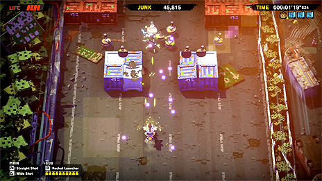 プレイヤーは、自分のプレイスタイルやステージ構成に合わせて、個性豊かな武器を自由に組み合わせ、全22ステージのハードなステージに挑戦します。さらに、各エリアの最後には強大でユニークなエリアボスが待ち受けています。