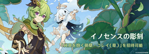 このほか,スメールの学者の研究課題に協力する「フェーイズの論証」,イベント商店で限定便利アイテムを獲得できる「秘宝の行方」,★4キャラクター「純真を抱く萌蘖・コレイ(草)」を無料で招待できる「イノセンスの彫刻」などのイベントも提供されている。