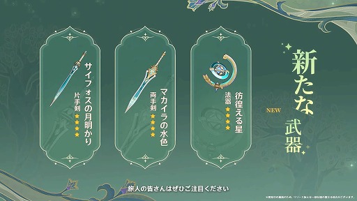 同期間中には新たな武器が登場するイベント祈願も実施される。手に入れたい武器がある人は,この機会に入手に挑戦してみよう。