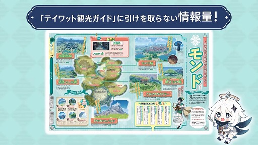 表紙には描きおろしイラストが採用され,テイワット旅行に役立つ情報が詰め込まれるという。また,原神好きの著名人によるオススメ情報や,ゲーム内のグルメを再現したレシピなども掲載される予定だ。