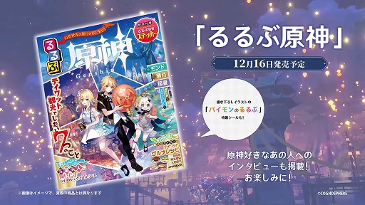 JTBパブリッシングによる旅行ガイドブック「るるぶ」と原神のコラボ雑誌「るるぶ原神」が12月16日にリリース予定であることが発表された。AB判の全96ページで,価格は1375円(税込)。