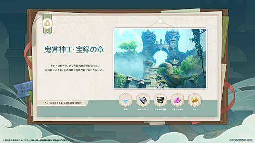 また,「七聖召喚」の大型アップデートも実施され,60種類以上の新規カードを追加。4柱の神である「ウェンティ」と「鍾離」「雷電将軍」「ナヒーダ」のキャラクターカードが満を持して登場し,新たなPVPモード「栄冠の試練」と,PVEモード「鋳境の研鑽」が実装されるとのこと。