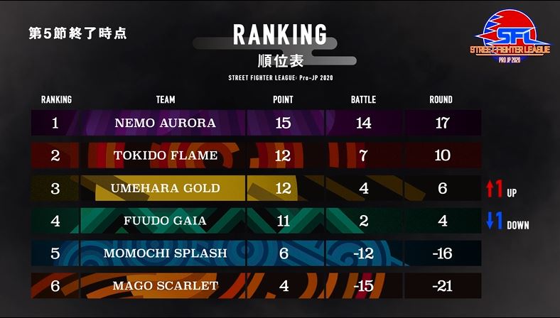 「ストリートファイターリーグ: Pro-JP 2020」第5節の結果が公開。第6節は10月30日21:00から配信