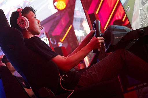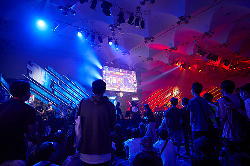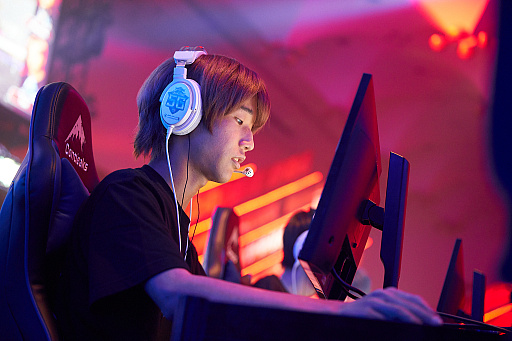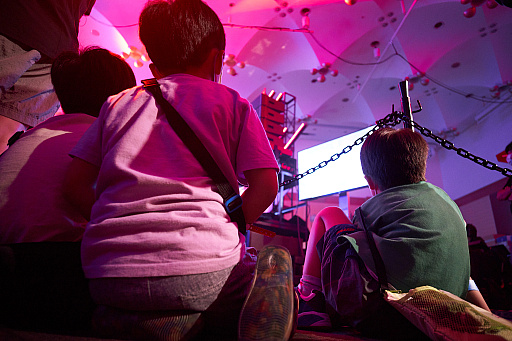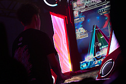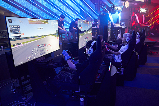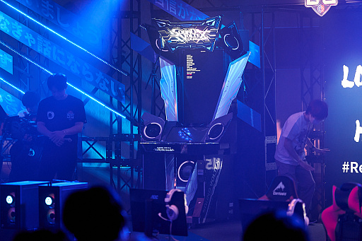 以上の5タイトル。フリージャンルで選ばれた「SOUND VOLTEX EXCEED GEAR」ではステージ上にアーケード筐体が用意された。そのほか,ステージには「グランツーリスモ7」用の大型モニターとレーシングコントローラや,「ストリートファイターV チャンピオンエディション」「VALORANT」「ぷよぷよテトリス2」用のPC一式もあり,ゲームセンターのような雰囲気になっていた。