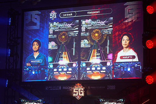 第1試合のタイトルは,前回大会で敗北している東軍チームが「SOUND VOLTEX EXCEED GEAR」を選択。3曲の合計スコアで争う。3曲中2曲は東西の選手が選び,1曲は運営が選ぶ方式を採用し,レベルは最高難度の20だ。東チームはMARUP*IC選手,西チームはMAGATORO選手の対戦カードとなる。