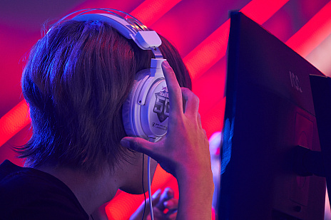 試合の合間に,会場で展示されていたTAGO STUDIOのヘッドフォンをチェックしてみた。TAGO STUDIOは群馬県高崎市に拠点を持ち,Red Bull 5G FINALSのステージ上ではT3-03使用されていた。T3-03は白基調であり,派手なカラーリングが多用されやすいeスポーツシーンでも目立ちやすい作りだ。